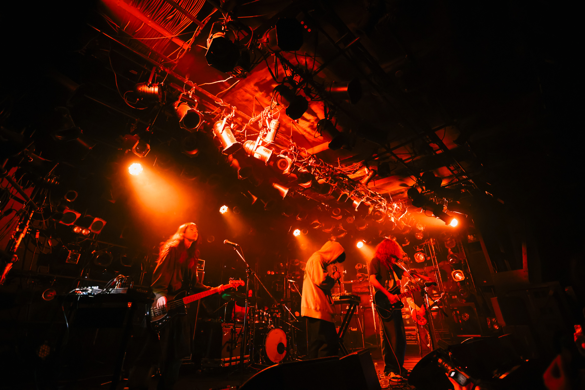 君島大空がたった一人で作り上げた、整然としたカオスとでも呼ぶべき空間──そこへ劇薬が投入された。バンド・セットにより最大出力となったMudd the studentのパフォーマンスは溌剌としており、観る者の感情にまっすぐ訴えかけ、否応なくアジテートしていく。突き刺すような轟音。グルーヴを生むベースとドラム。アグレッシヴに躍動するアンサンブルに、ひたすら身を任せた。