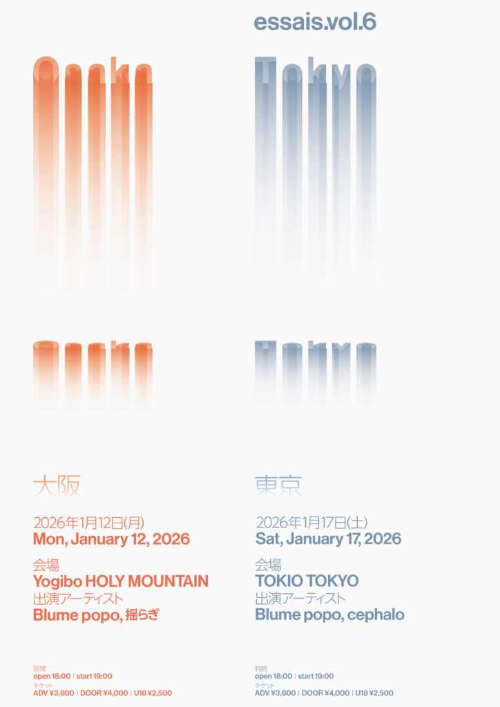なお、来年1月には大阪と東京でリリース記念の自主企画ツーマン・ライブを開催。大阪では揺らぎ、東京ではcephaloとの共演が決まっている。