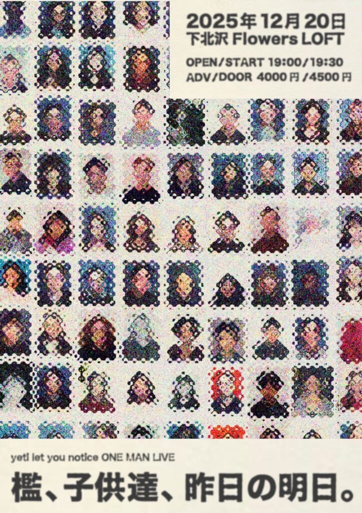東京を中心に活動する4人組オルタナティヴ・ロック・バンド、yeti let you noticeが10周年を記念したワンマンライブ『檻、子供達、昨日の明日。』の開催を発表した。本公演は下北沢Flowers LOFTにて2025年12月20日(土)に開催される。